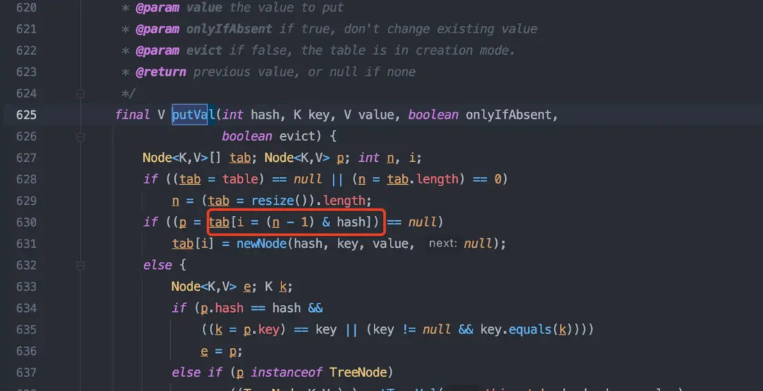 這裏的 n 是 HashMap 的長度,hash 是上一步得到的值。