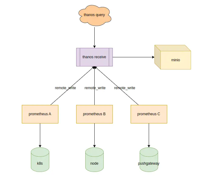 Receive 是一個可以接收來自 Prometheus 遠程寫入的數據的組件,主要用於高可用的集羣環境中。它能夠處理來自多個 Prometheus 實例的寫入請求
