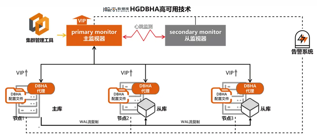 - Patroni:通過監控 PG 進程檢測故障,若主庫進程缺失,嘗試重啓或根據配置降級。