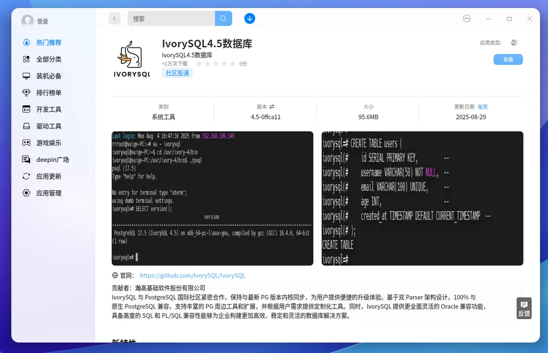 近日,IvorySQL 與 deepin 操作系統成功完成了兼容性適配認證。這一里程碑式的成就標誌着 IvorySQL 在國產操作系統生態中的進一步深化,為用户提供更穩定、高效的數據庫解決方案。