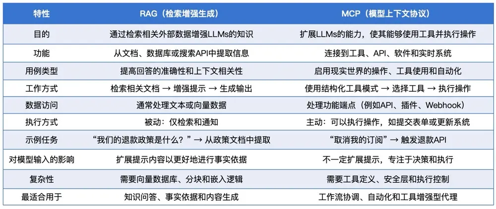 RAG 技術與 MCP 技術的比較