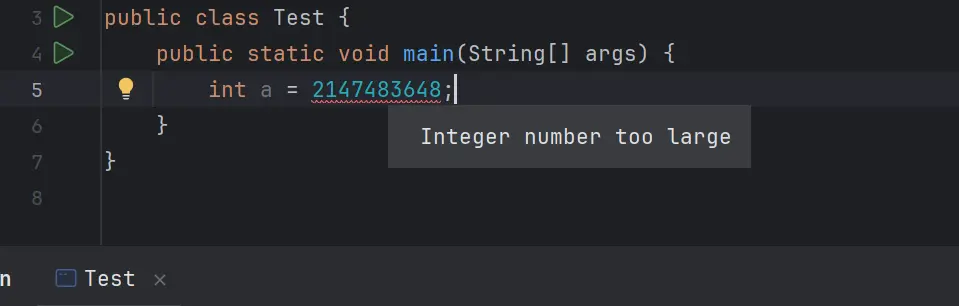 從 int 類型可以表示的數的範圍解釋是比較好理解的。以 int 類型為例,它能夠表示的範圍是 2^31 到 2^31 - 1。即 -2147483648 到 2147483647,可以看到最小的負數是 -2147483648 。它的絕對值實際上應該是 2147483648,但是這個值已經超過了 int 類型能夠表示的最大的數 2147483647 了。如果返回 2147483648,它是不能在一個 int 類型的數中表示的。如果我們直接把 2147483648 這個數賦值給一個 int 類型的變量,編譯器也會提示 Integer number too large,如下圖所示:
