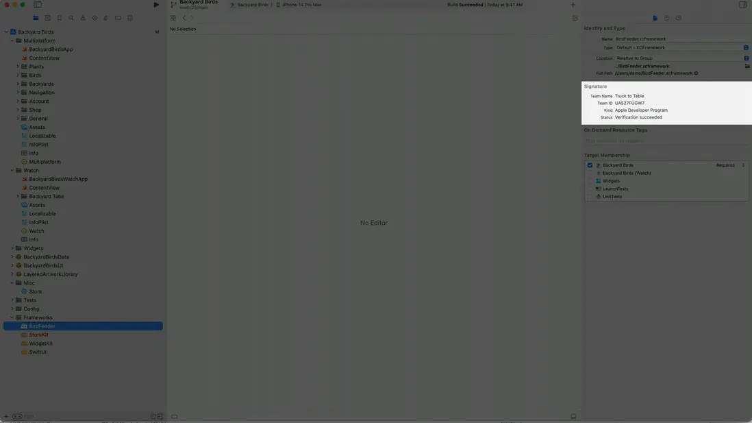 XCode 引入了XCFrameWork 可以對簽名的框架進行驗籤,從而顯示其來源,並保障其完整性不被破壞,從而建立框架的信任機制。