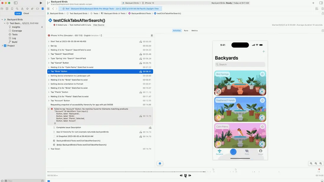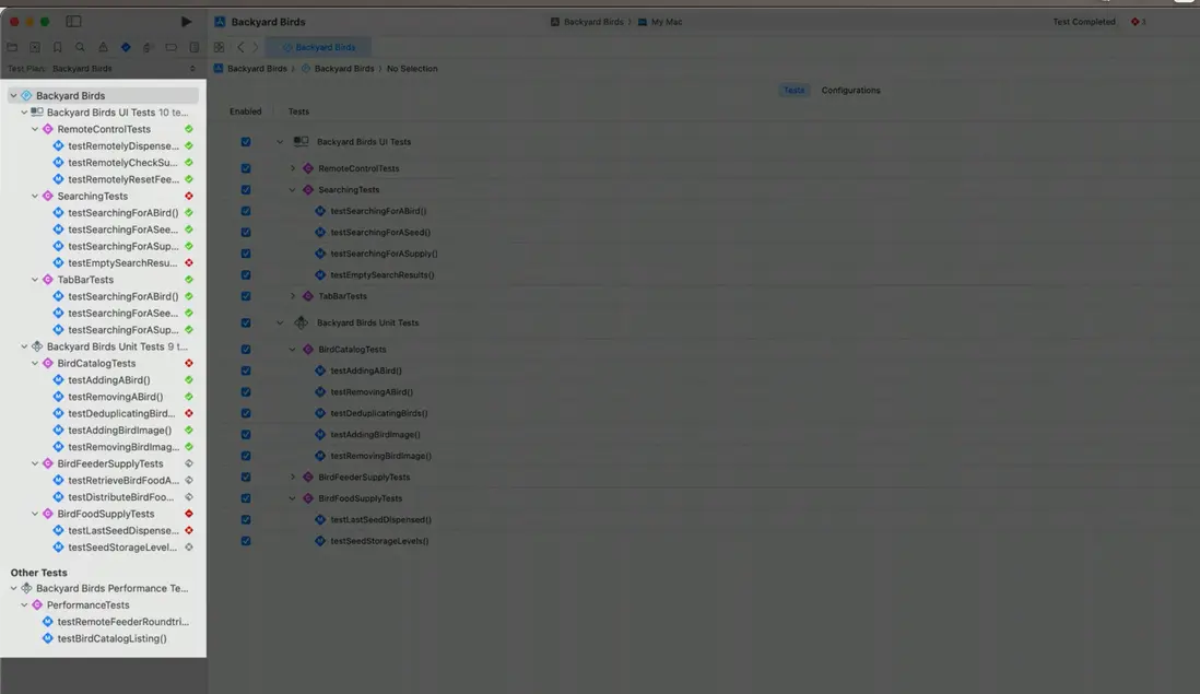 Apple 對新的測試面板使用Swift 進行了重寫,提速了45%,下圖案例列出了測試計劃中的測試用例。