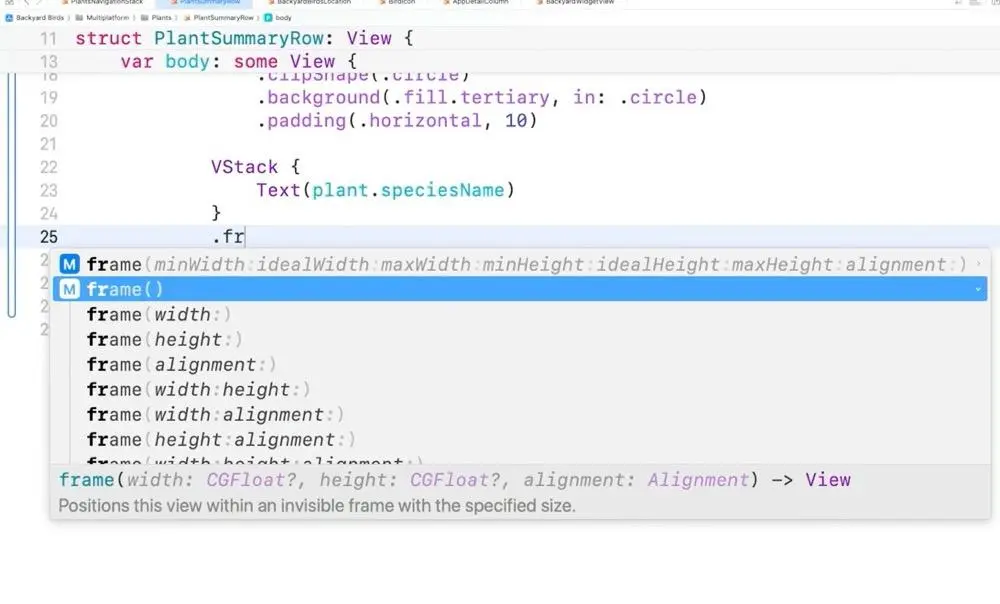 例如在 Text 組件調用中,輸入"點號" 後,在彈出的提示列表中的最上方會提示 font (此時 Text 還沒設置 font ),這是因為XCode分析了上下文,“識別出” 這是一個 Text, 並且此時還沒有設置過字體,你可能需要它,因此將字體放在建議的最上方。