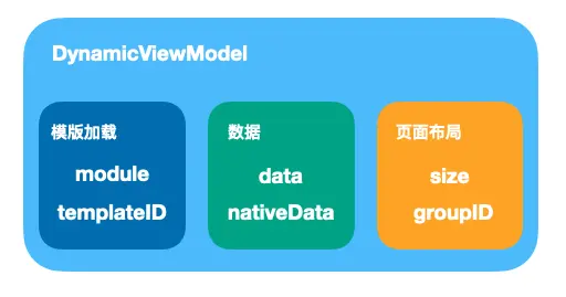根據MCube SDK的必傳參數要求,我們封裝了必要的module(頁面名)和templateID(模版ID);在數據部分,模型封裝了用於模版的數據源data,這樣就可以讓動態化視圖(DYNContainerView)從數據源取數據進行展示,同時也方便外部下發;同時我們有大量原生樓層做動態化改造的場景,需要保留原數據進行交互和降級,所以模型預留了原生樓層使用的nativeData,方便在有以上需求的時候取用;最後,考慮到頁面有將某些樓層按照section成組進行展示的場景,模型設計了用於組劃分的groupID,相同groupID為一個section,按照頁面具體的業務需求決定組的展示形式(卡片或者分割)。