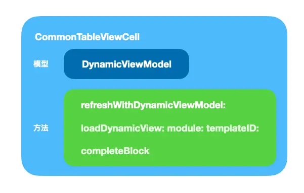 在視圖層面,以封裝好的DynamicViewModel為基礎,將動態化視圖加載等操作進行了封裝,形成了通用樓層CommonTableViewCell: