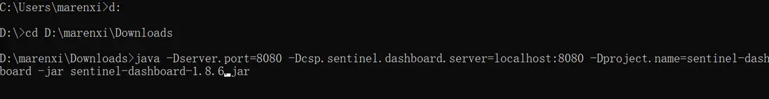 java -Dserver.port=8080 -Dcsp.sentinel.dashboard.server=localhost:8080 -Dproject.name=sentinel-dashboard -jar sentinel-dashboard.jar