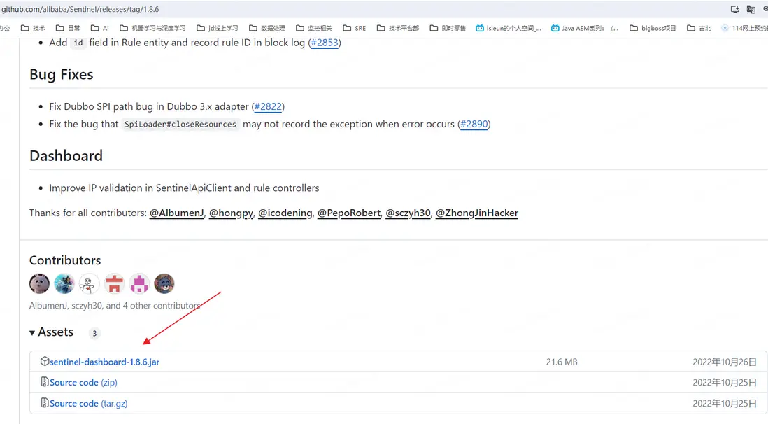 訪問 https://github.com/alibaba/Sentinel/releases/tag/1.8.6
