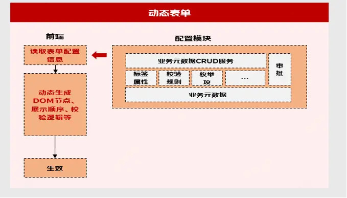 區別於傳統表單前後端配合聯調的開發實現方式,動態表單通過一種基於元數據管理的配置化方法來實現表單的動態生成,並能根據配置自由增改刪指定字段。實現特定需求的自助化。