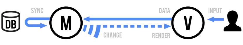 如圖所示,當用户與視圖層產生交互時,控制層監聽變化,負責與數據層進行數據交互,觸發數據Change事件,從而通知視圖層重新渲染,以實現UI界面更新。更進一步,當數據層發生變化時,由Backbone提供了數據層和服務器數據共享同步的能力。