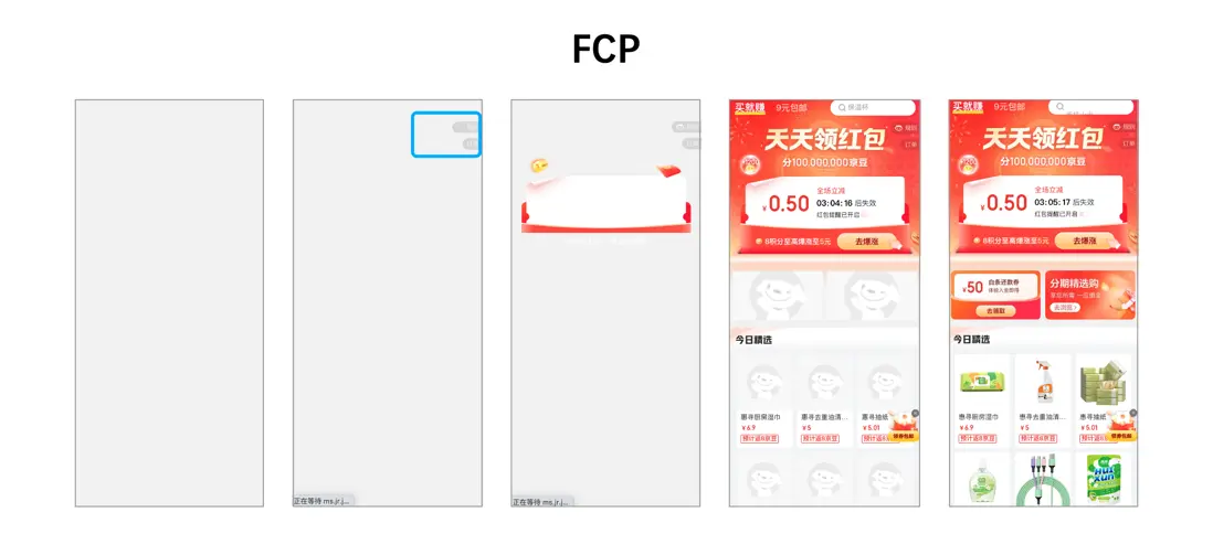 FCP: First Contentful Paint 首次內容繪製是指測量頁面從開始加載到頁面內容(文本、圖片、背景圖、svg 元素或非白色 canvas 元素)的任何部分在屏幕上完成渲染的時間,是測量加載速度感知的重要指標之一。