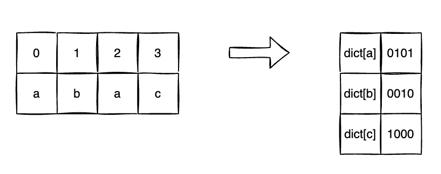 Shift-and算法的總體思路是把模式串預處理成一種特殊編碼形式,然後根據這種編碼形式去逐位匹配文本串。