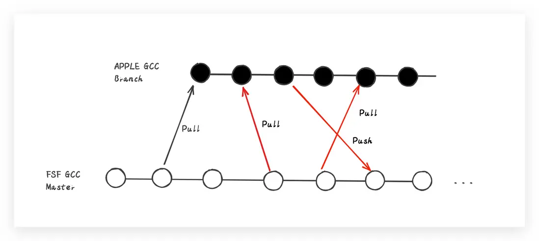 對於Apple的編譯器,就不得不説一下GCC與LLVM的相愛相殺了。由於編譯器涉及到從高級開發語言到低級語言的轉換處理,複雜度自然不必多説。我們都知道Apple產品軟件的開發語言是Objective-C,可以認為是對C語言的擴展。而C語言所使用的編譯器則是大名鼎鼎的GCC,此時的GCC肯定是妥妥的大哥了,所以早些年為了不必要的資源投入,對於自家OC(Objective-C簡稱OC)編譯器的開發索性直接拿大哥的代碼GCC進行二次開發了,沒錯,從主幹版本中拉個獨立分支搞起。這麼看的話,Apple早期就已經開始了降本增效了?