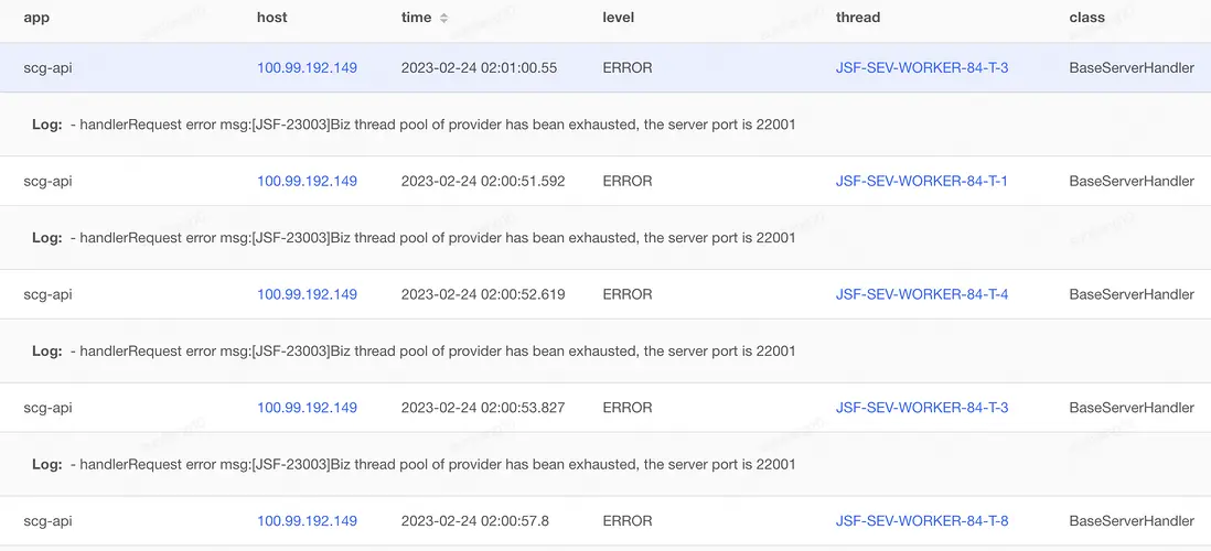 這個讓我挺意外的,之前看jsf代碼以及和jsf架構師交流得到的信息是:所有RpcException都會進行重試,重試的時候通過負載均衡算法重新找provider進行調用,但在實際驗證過程中發現若服務端報:handlerRequest error msg:\[JSF-23003\]Biz thread pool of provider has bean exhausted, the server port is 22001,**客户端不會發起重試**,此結論最終與jsf架構師達成一致,所以此類場景想要重試,需要在客户端程序中想辦法,實現比較簡單,這裏不貼樣例了。
