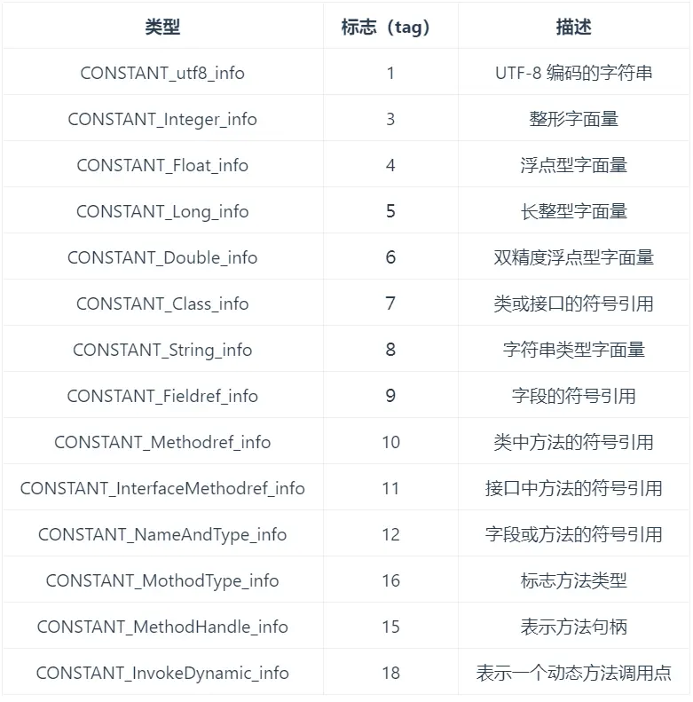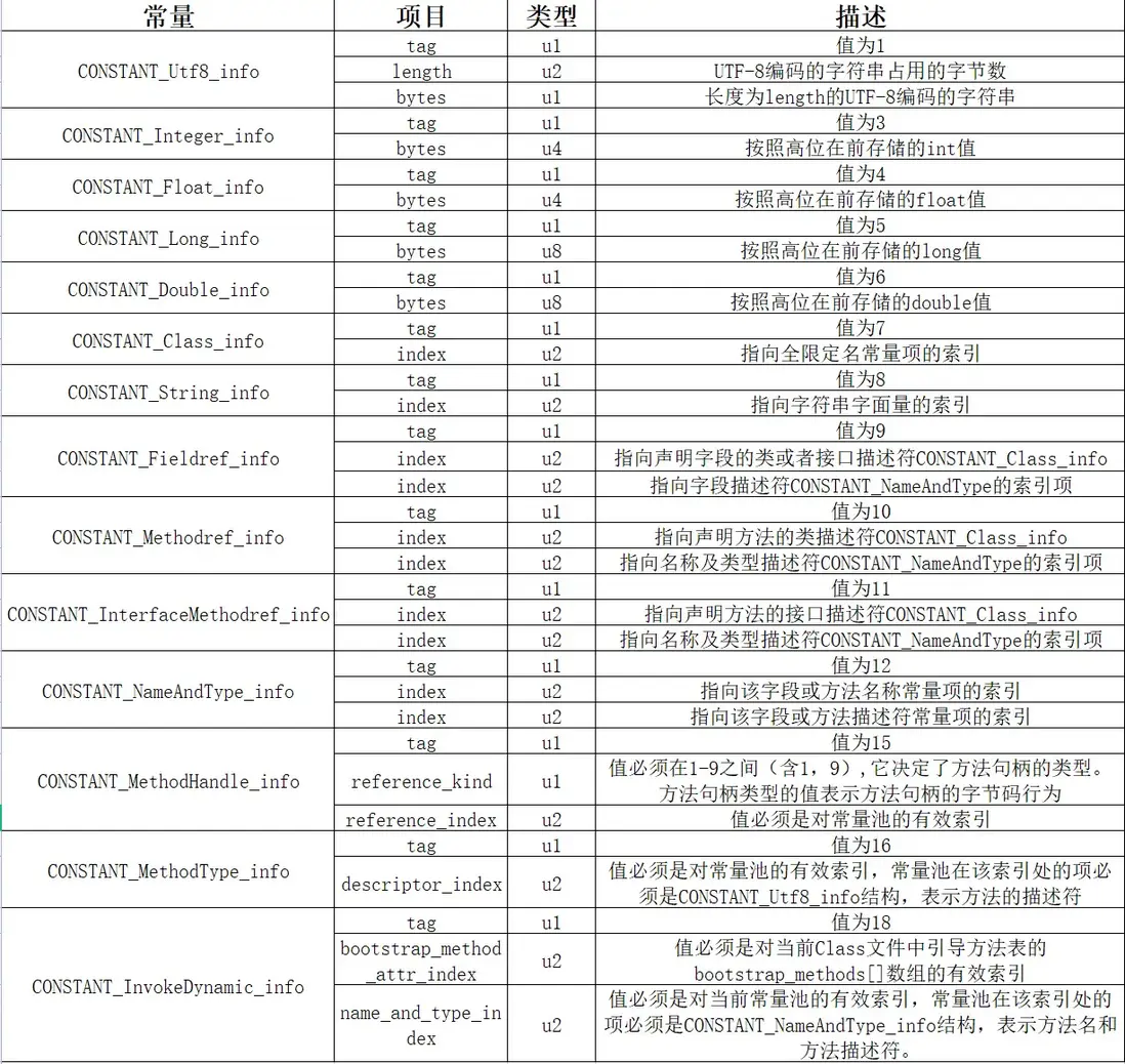 jvm常量池類型和結構體定義