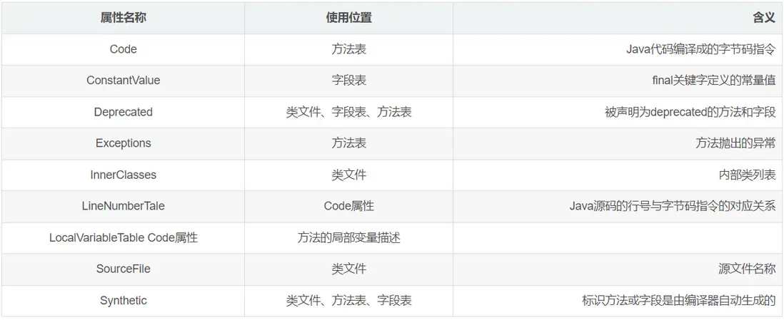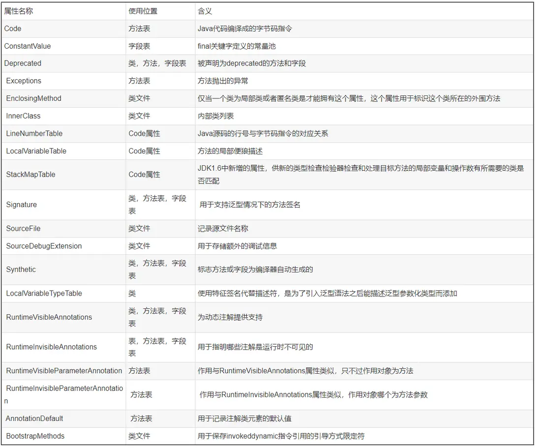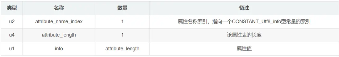 Class類文件是緊湊、順序、無空隙的,魔數(MagicNumber)、Class文件版本(Version)、常量池(Constant\_Pool)、訪問標記(Access\_flag)、本類(This\_class)、父類(Super\_class)、接口(Interfaces)、字段集合(Fields)、方法集合(Methods )、屬性集合(Attributes)。其中因為java多繼承所以interfaces接口類型為數組;attribute_info則是方法表中定義的code索引,指向具體的方法體字節碼。如圖1所示。