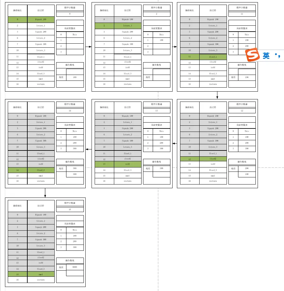 以上字節碼執行過程如下