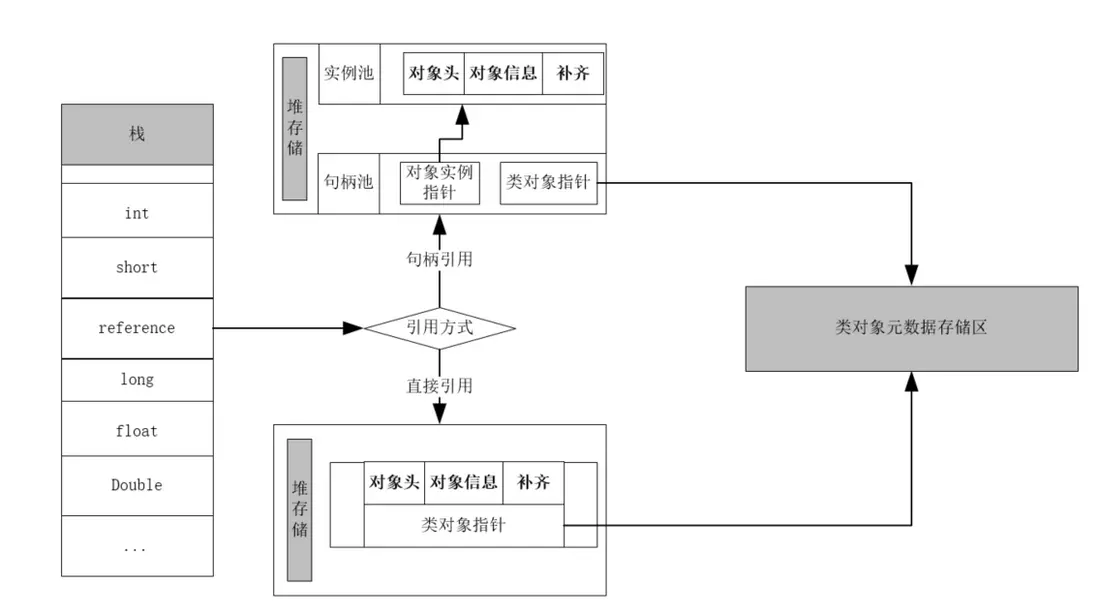 Java堆中將會劃分出一塊內存來作為句柄池,reference中 存儲的就是對象