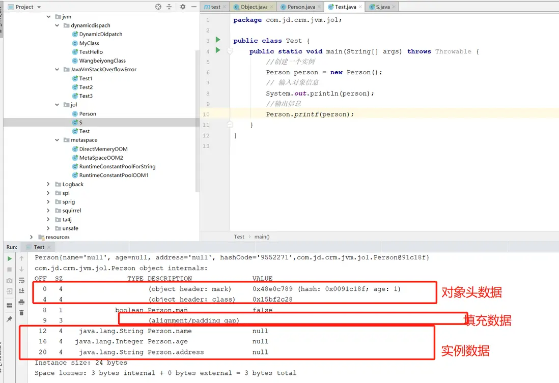 對象在對中的存儲佈局主要分為三部分,對象頭、實例數據、對齊填充