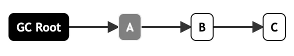 那麼如果這時A對象取消了對B對象的引用,而GC Root增加了對C對象的引用,GC Root作為黑色標記不會再次被掃描,那麼C對象在標記階段結束後仍然會保持白色,就會被清除掉。