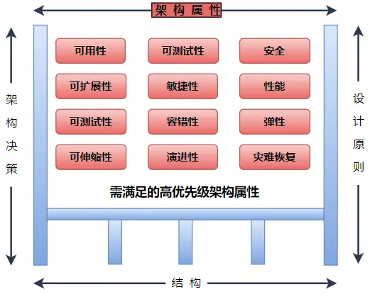 架構屬性亦稱質量屬性,或非功能屬性,通常表示系統需要具備或滿足的某種 “能力”,比如高性能、可擴展性、彈性、伸縮性、容錯性、可測試性、可維護性等等。架構設計的目標需要關注系統需要滿足的架構屬性,架構最終要體現對架構屬性支持的相關架構決策。架構屬性眾多,系統需要關注的是這些架構屬性的子集,具體的某次特定的架構設計所需要關注的架構屬性需要依據問題域的上下文而具體分析。同時,不同的架構屬性間可能存在衝突,這種情況同樣需要架構師的權衡和決策。