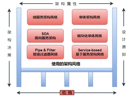 •結構:應用系統所選擇的架構風格,比如微服務架構、單體架構還是SOA等