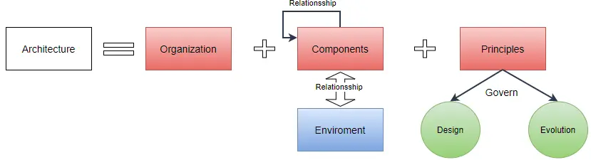 the fundamental organization of a system, embodied in its components, their relationships to each other and the environment, and the principles governing its design and evolution --ANSI/IEEE
