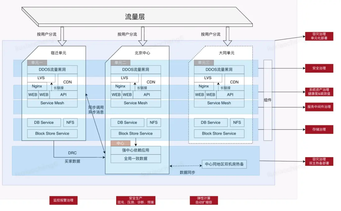 網關安全保障:通常我們的網關分為技術網關和業務網關,技術網關更多關注的是安全、鑑權、防刷、防攻擊、限流和降級等功能,業務網關更多的是偏BFF層的業務接口適配、裁剪等能力。這塊我們應該更多面對的是熱點流量峯值的不確定性、用户行為的不確定性以及安全攻擊等風控行為,需要結合風控團隊對於黑產異常流量、異常IP、Cookie自動加入黑名單進行限流操作;同時結合大促壓測進行壓測指標評估,結合大促預期目標對於系統應用有個合理的閾值和水位管控。