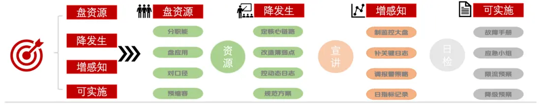 (5)宣講會後日檢工作內容,比如成立應急故障虛擬小組,基於歷史故障和常見問題形成故障手冊,同時制定限流和降級預案等指南手冊。