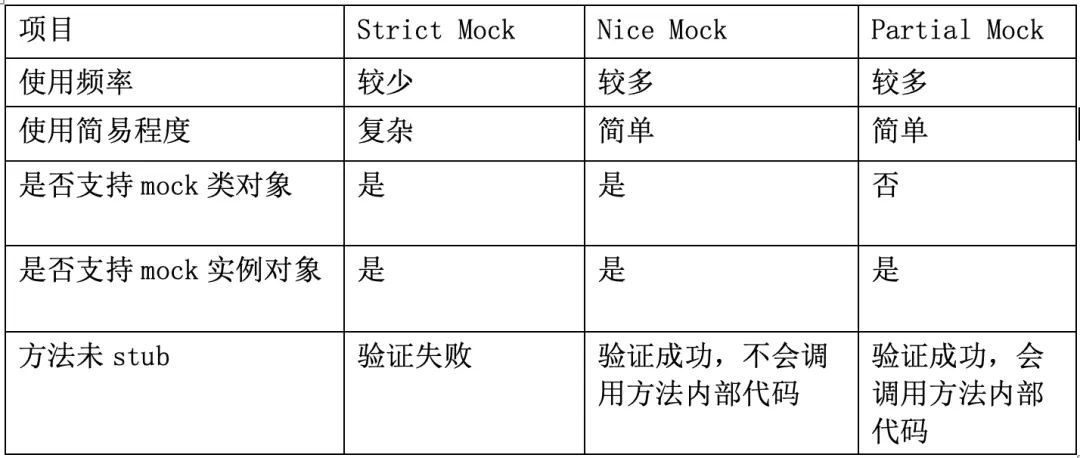對talk方法進行單測時需要對person類進行mock,以下是通過三種不同的方式生成mock對象,對三種方式的調用方法,使用場景都做了介紹,最後對每種方式的優缺點也做了一個表格方便區別。