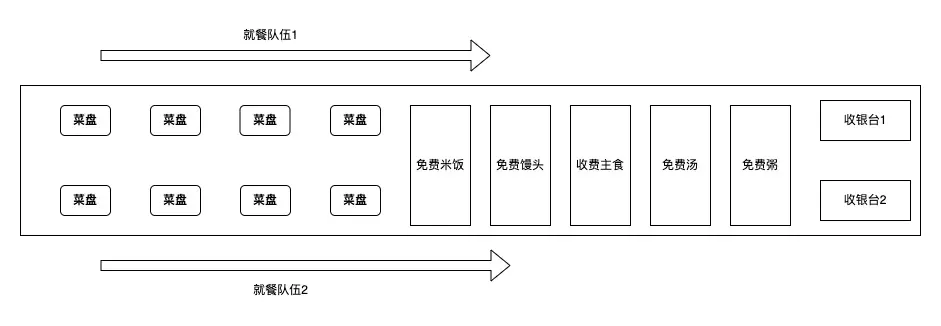 後來在一次好友聚會時,華哥和我聊起了這個事情,他問我:你們搞技術的不都各種吹噓什麼系統優化,降本增效一類的嗎,你幫我想想辦法。聽完華哥這略帶挑釁意味的要求,我突然覺得自己身上有了很重的責任感,覺得自己要守住技術人的尊嚴。於是自己好好想了想,然後覺得這個商業問題實際上也可以看成一個技術問題,這個餐枱可以看成一個系統,打餐的流程可以認為是系統的一次交互流程,每個打菜的同事可以看成是一次調用,因為每次調用執行起來的性能太差,導致系統整體的吞吐量太低,影響了整體系統的效能,因此整個系統的效能很低,雖然當時已經是酒過三巡,腦子不太清醒了,但是自己還是盡力給華哥想了好幾個辦法。