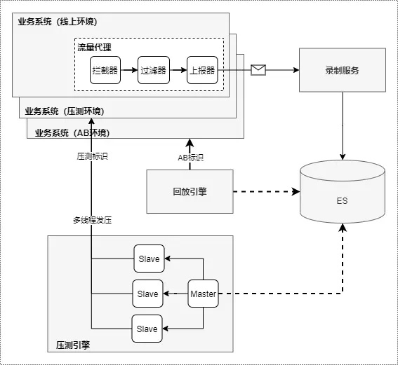 在業務系統中引入流量代理,通過流量代理攔截(JSF Filter或AOP)線上流量,並將流量通過異步MQ方式上報給錄製服務做持久化存儲。