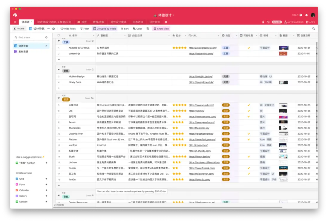- 對於 A,我們可以參考國外的 Airtable、國內飛書的多維表格、騰訊文檔在線表格,支持多人協作,支持大批量數據的操作,支持多種數據類型