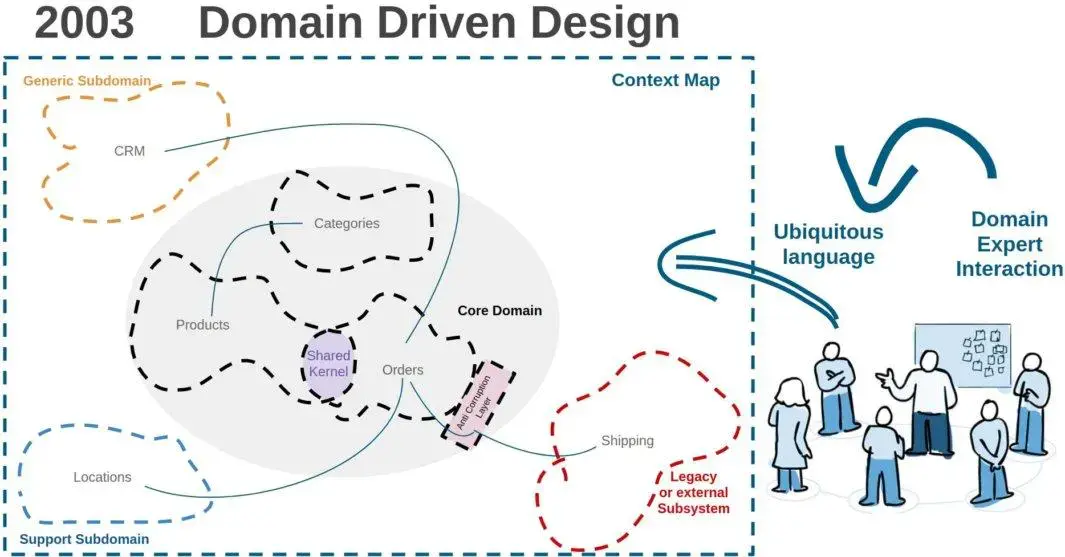 共享內核由 DDD 之父 Eric Evans 定義,它是多個限界上下文之間共享的代碼,由開發團隊決定: