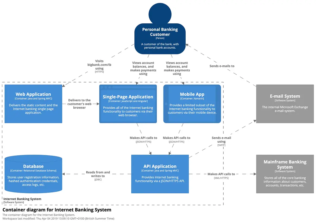 C4 模型是 Simon Brown 發明的,是我目前看到的關於軟件架構文檔的最好思路。我會快速地用自己的語言來闡述主要的思路,但使用的還是他的圖例。