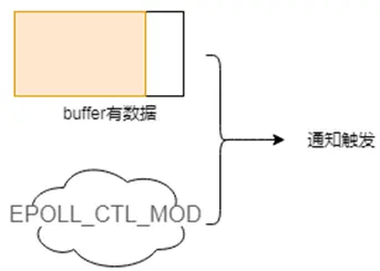 - buffer中有數據,此時用户對操作的fd註冊EPOLL_CTL_MOD事件的時候,會觸發通知。