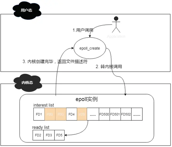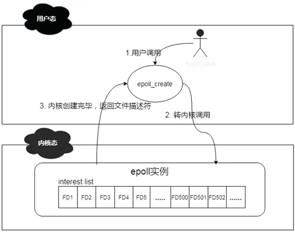 首先,利用epoll_create在內核中創建一個epoll對象。其實這個epoll對象,就是一個可以存儲客户端連接的數據結構。