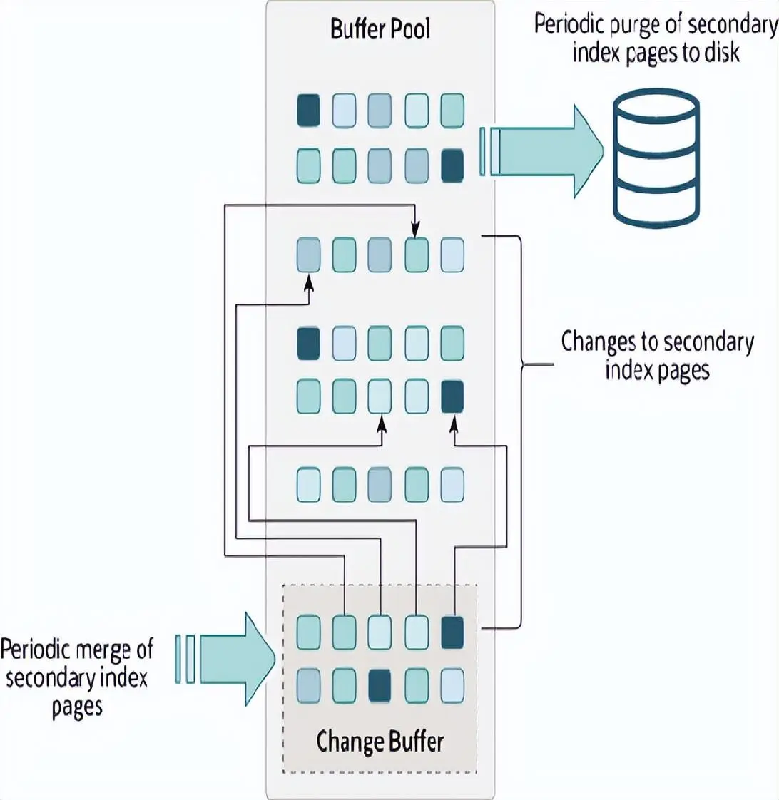 在MySQL5.5之前,叫插入緩衝(Insert Buffer),只針對INSERT做了優化;現在對DELETE和UPDATE也有效,叫做寫緩衝(Change Buffer)。它是一種應用在非唯一普通索引頁(non-unique secondary index page)不在緩衝池中,對頁進行了寫操作,並不會立刻將磁盤頁加載到緩衝池,而僅僅記錄緩衝變更(Buffer Changes),等未來數據被讀取時,再將數據合併(Merge)恢復到緩衝池中的技術。寫緩衝的目的是降低寫操作的磁盤IO,提升數據庫性能。