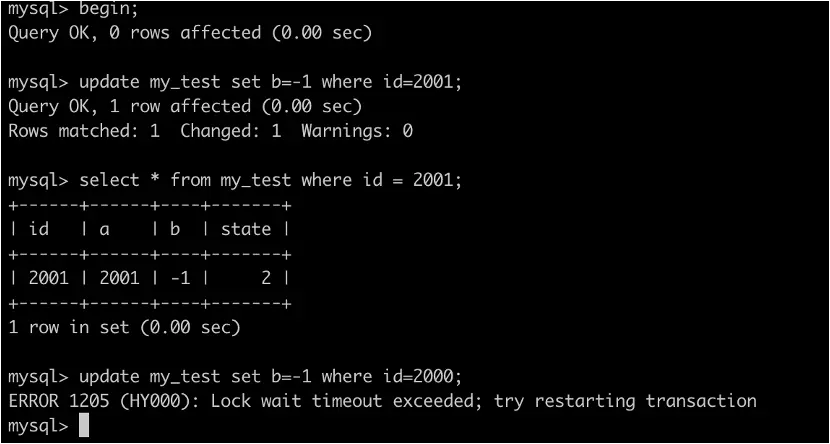 INSERT INTO my_test2 VALUES(21,0,5); //不阻塞