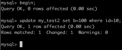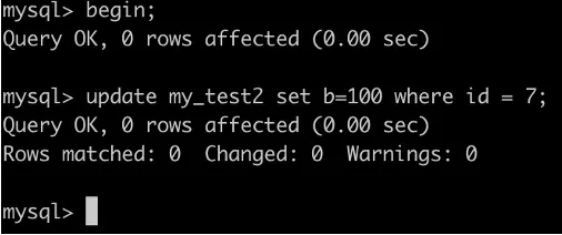 事務A執行UPDATE my_test2 SET b=100 WHERE id =7;