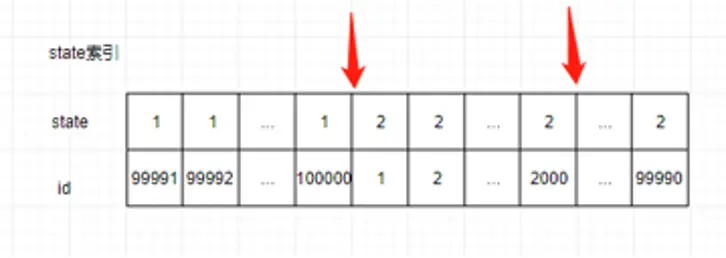 表中一共有10萬條數據,只有後10條的state=1(id>99990)