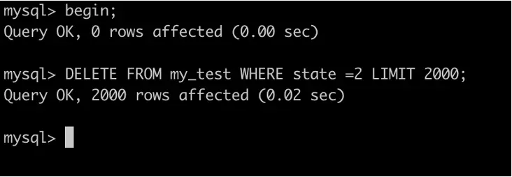 執行 DELETE FROM my_test WHERE state =2 LIMIT 2000;
