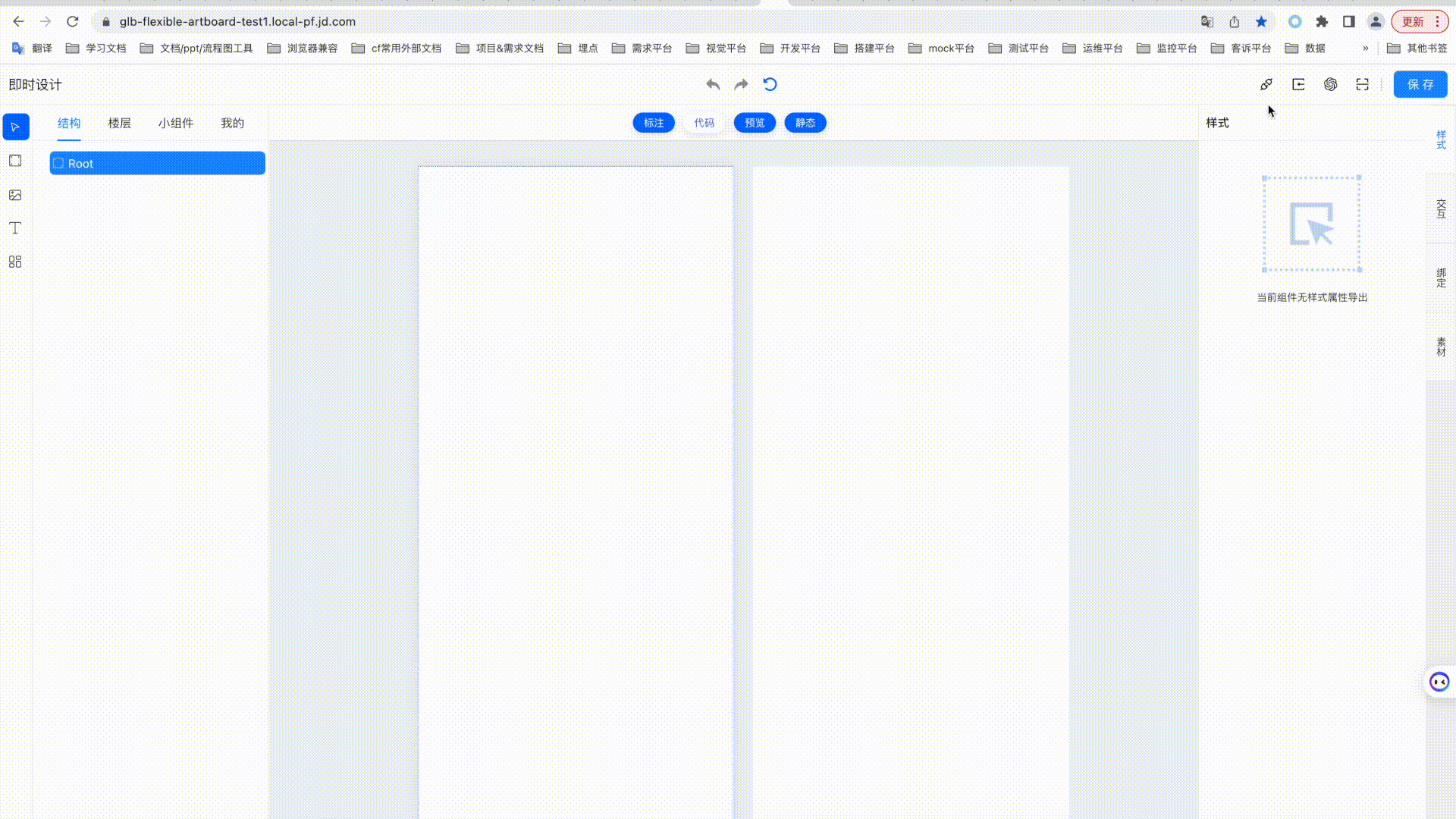 其中導出配置按鈕位於標題“樣式”右側,點擊後展開抽屜展示無分組的所有樣式列表,支持勾選和編輯別名,勾選後會在選中Root或Component組件節點時,樣式區展示已勾選的導出配置項,供快速對指定配置修改值;