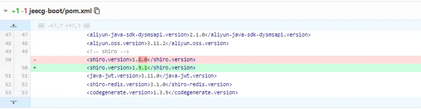 升級jeecg-boot/pom.xml中的shiro版本至1.9.1即可,如下圖: