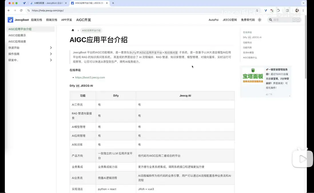 | 功能 | Dify | Jeecg AI |