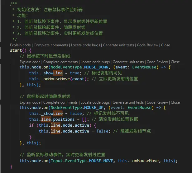 然後監聽一下鼠標事件,按下時顯示激光,移動瞄準,抬起時關閉激光。