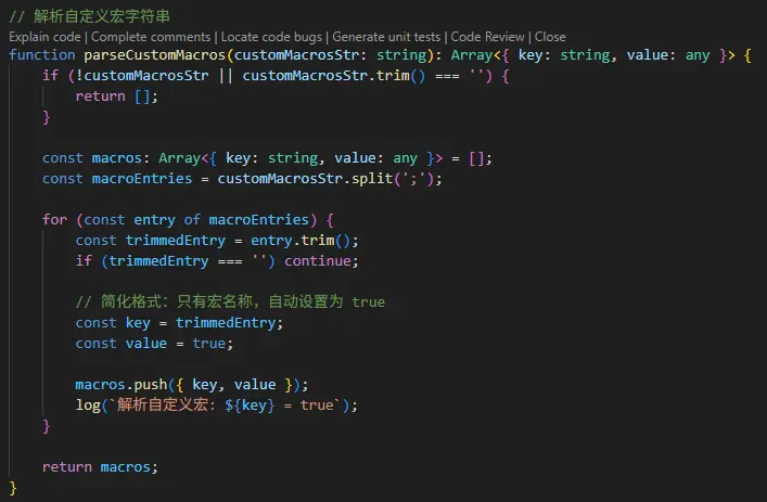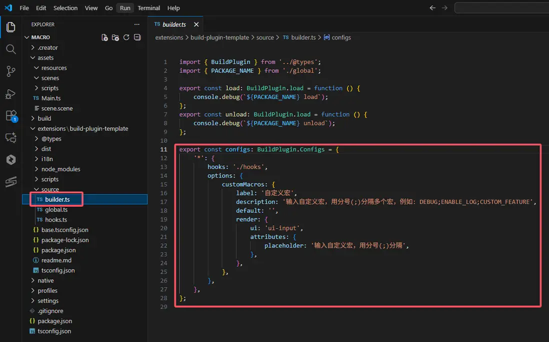 在builder.ts中,刪除不需要的代碼,添加一個自定義宏的輸入框,用於不同的平台輸入指定的宏,用;隔開。