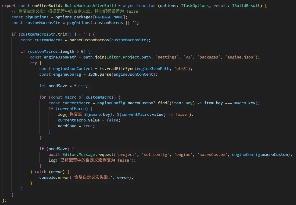 - 構建後恢復宏配置:為了避免構建後宏影響了其他平台,我們需要將對應的宏進行恢復: