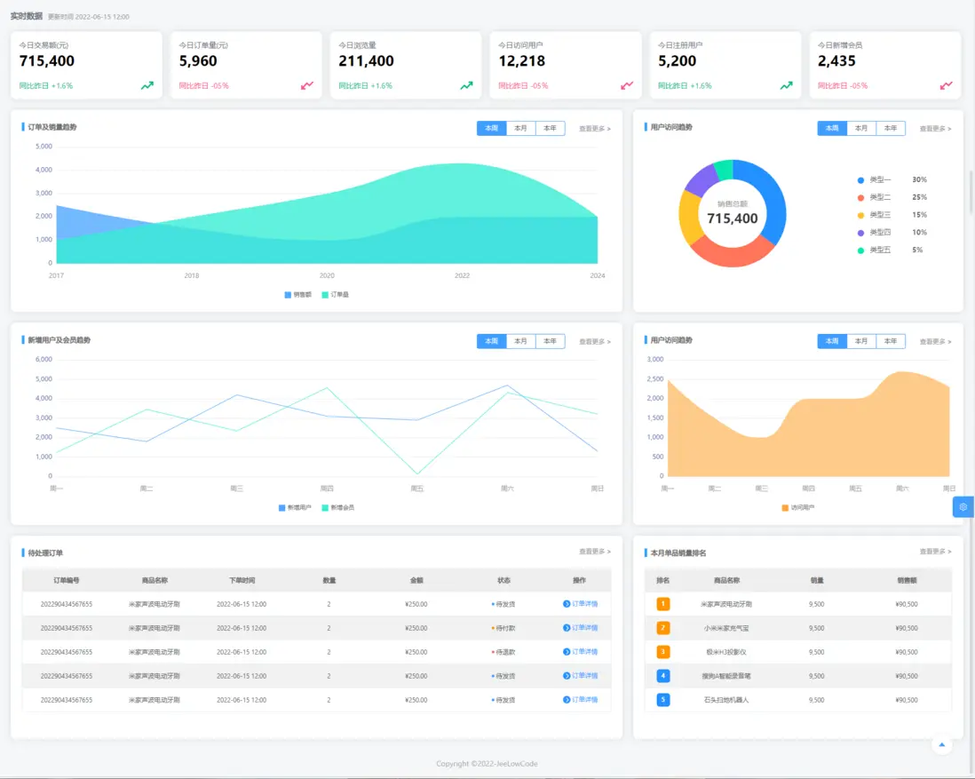 - 多維分析引擎:支持自定義報表和交互式儀表盤,結合可視化組件提供業務洞察。